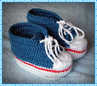 Esta fofura de tenis para bebê imitando um all star em crochê é o máximo, adoro fazer. Muito criativo, é meu presentinho favorito para as amigas grávidas. Este foi enviado para São Caetano, encomenda da Andréia que presenteou sua prima, elas adoraram!  A receita tirei do blog da Josi http://josicroche.blogspot.com.br/, o passo a passo é perfeito!